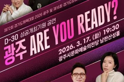 [리버럴미디어=공소리 기자] 광주시문화재단은 오는 3월 17일 오후 7시 30분, 광주시문화예술의전당 남한산성홀에서 ‘제72회 경기도체육대회 2026 광주 및 제16회 경기도장애인체육대회 2026 광주 D-30 성공기원 공연’ '광주! ARE YOU READY?'’를 개최한다. 이번 공연은 2026년 4월 광주에서 열리는 ‘경기도 (장애인)체육대회 2026 광주’의 성공적인 개최를 기원하기 위해 마련된 특별 공연으로, 시민들과 함께 대회의 의미를 나누고 축제 분위기를 조성하기 위해 기획됐다. 공연은 가요와 국악, 비보잉, 드럼 퍼포먼스 등 다양한 장르가 한 무대에서 펼쳐지는 다채로운 무대로 구성된다. 장르의 경계를 넘나드는 공연을 통해 관객들에게 색다른 즐거움을 선사할 것으로 기대된다. 특히 ‘경기도 (장애인)체육대회 2026 광주’의 성공 개최를 응원하기 위해 광주시 홍보대사들이 공연에 함께 참여해 눈길을 끈다. 대한민국을 대표하는 국악인 김영임, 폭발적인 가창력으로 사랑받는 가수 박기영, 흥겨운 무대로 사랑 받는 트로트 가수 우연이, 강렬한 퍼포먼스의 드러머 리노가 무대에 올라 공연의 열기를 더한다. 또한