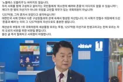 [리버럴미디어=공소리 기자] 홍성규 진보당 경기도지사 후보는 2일 SNS에 글을 올려 최근 안철수 의원의 '상위 30% 배려와 존중' 주장에 "긴급생계지원금이 무슨 의미인지는 아나! 재산순위 부동의 1위 국회의원의 세상물정 모르는 투정이자 민생고라고는 전혀 모르는 1257억원 자산가의 오로지 비판을 위한 비판"이라고 일갈했다. 정부가 고유가와 고물가 부담을 던다는 취지로 4조 8,000억 원을 들여 전 국민 소득 하위 70%인 약 3,580만 명에게 10만 원에서 60만 원의 '고유가 피해지원금' 지급을 추진하는 가운데 안철수 국민의힘 의원이 지난 1일 '상위 30%에 해당하는 국민에 대한 존중과 배려가 부족하다'고 반발하고 나선 바 있다. 안철수 의원은 지난 3월 25일 국회공직자윤리위원회가 공개한 2026년도 정기 재산 변동 신고에서도 1257억원을 신고해 부동의 1위를 유지하고 있기도 하다. 홍성규 후보는 "낯뜨거워 차마 얼굴을 들기조차 민망하다. 긴급생계지원이 도대체 무슨 의미인지도 모르나?"라고 반문하며 "그렇다고 일괄 지급 요구를 하는 것은 아니라니, 무슨 말이 하고 싶었던 것인가! 그간 보여준 '안철수 정치'처럼 이번에도 도통 무슨 소리인지 알