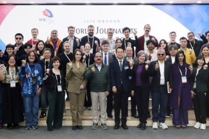 [리버럴미디어=공소리 기자] 경기도의회는 2일 오전 의회 청사에서 ‘2026 세계기자대회(World Journalists Conference)’에 참가한 외신기자단을 맞아 환영 행사를 개최하고, 경기도의회의 주요 역할 및 의정활동을 소개했다. 이번 방문은 한국기자협회가 주최하는 세계기자대회 일정의 일환으로 진행됐으며 일본, 중국, 프랑스, 독일 등 30여 개국 50여 명의 외신기자들이 참석했다. ‘2026 세계기자대회’는 3월 29일부터 4월 3일까지 5박 6일간 서울과 경기도 일원에서 진행된다. 이날 외신기자단은 의정기념관 ‘경기마루’와 본회의장 체험관 등을 둘러보며 경기도의회의 디지털 의정 시스템과 의회 운영 현황을 직접 체험했다. 이어 대회의실에서 진행된 간담회에서는 경기도의회 소개와 함께 질의응답, 기념촬영 등이 이어졌다. 박호순 의정국장은 환영 인사를 통해 “세계 각국에서 오신 기자 여러분의 경기도의회 방문을 진심으로 환영한다”라며 “이번 방문이 경기도의회의 역할과 한국 지방자치의 발전 모습을 이해하는 뜻깊은 계기가 되길 바란다”고 말했다. 이어 박 국장은 AI 시