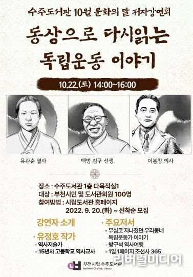 강연은 모두 수주도서관에서 대면으로 개최된다. 해당 행사에 참여를 희망하는 사람은 부천시립도서관 홈페이지에서 신청할 수 있다.