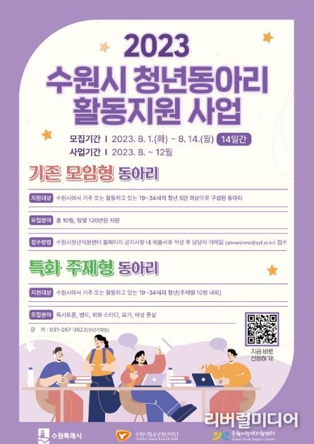 [리버럴미디어=공소리 기자] 수원시청소년청년재단은 오는 14일까지 청년 동아리 활동 지원사업의 참가 동아리를 모집한다.