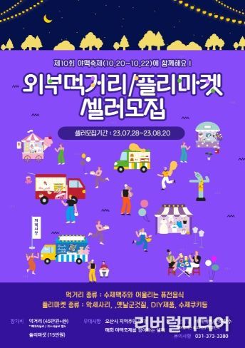 [리버럴미디어=공소리 기자] 오산시는 10월 20일부터 22일까지 3일간 열릴 제10회 야맥축제 개최를 앞두고 먹거리와 플리마켓 판매자를 모집한다고 밝혔다.