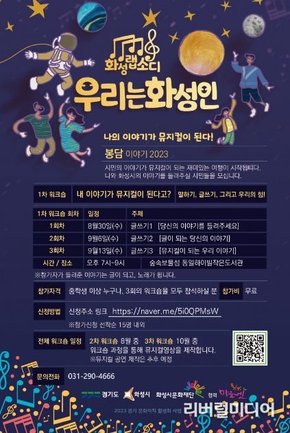[리버럴미디어=공소리 기자] (재)화성시문화재단은 2023 경기 문화자치 활성화 사업으로 시민이 화성의 노래를 함께 만드는 ‘화성랩소디’를 운영한다.