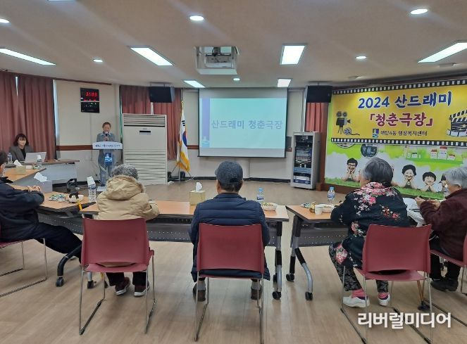 [리버럴미디어=공소리 기자] 지난 18일 매탄4동 지역사회보장협의체는 동 행정복지센터 산샘실(2층)에서 관내 저소득 가정 어르신 10명을 모시고 2024년 제1회 산드래미 '청춘극장'을 개최했다.