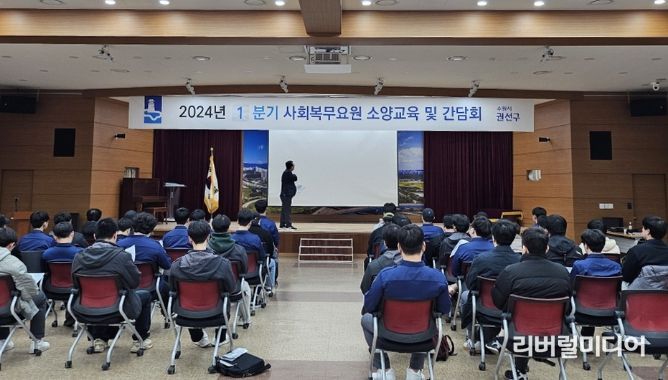 [리버럴미디어=공소리 기자] 지난 25일, 수원시 권선구는 2024년도 1분기 사회복무요원 소양교육 및 복무부서 담당자 직무교육을 진행했다.