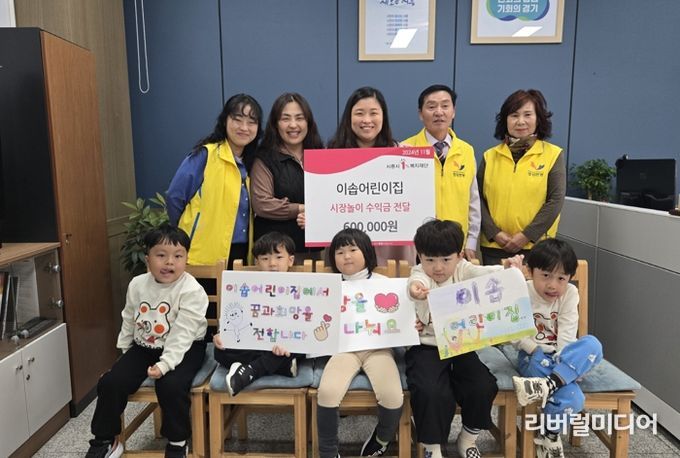 [리버럴미디어=공소리 기자] 시흥시 정왕본동 지역사회보장협의체는 지난 8일 이솝어린이집으로부터 시장놀이 수익금 60만 원을 전달받았다. 이솝어린이집이 작년에 이어 2년 연속 기부한 후원금은 정왕본동 지역사회보장협의체 기금으로 지정 기탁돼 정왕본동의 저소득 소외계층을 위한 다양한 복지사업에 사용될 예정이다.