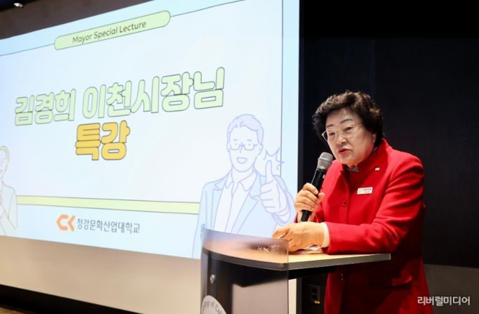 [리버럴미디어=공소리 기자] 김경희 이천시장은 3월 7일 청강대 만화도서관에서 만화 콘텐츠 스쿨 신입생 50여 명을 대상으로 특강을 진행했다.