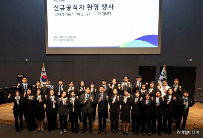 [리버럴미디어=공소리 기자] 경기도는 31일 도청에서 올해 상반기 임용된 신규 공직자 29명에게 공무원증을 전달하고, 이들의 공직 첫걸음을 축하하는 ‘2025 경기도 신규 공직자 환영행사’를 열었다.