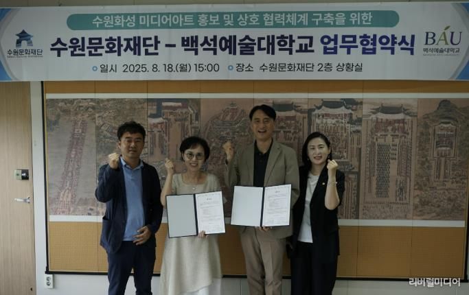 [리버럴미디어=공소리 기자] 수원문화재단은 지난 18일 백석예술대학교와 업무협약을 체결했다고 밝혔다.