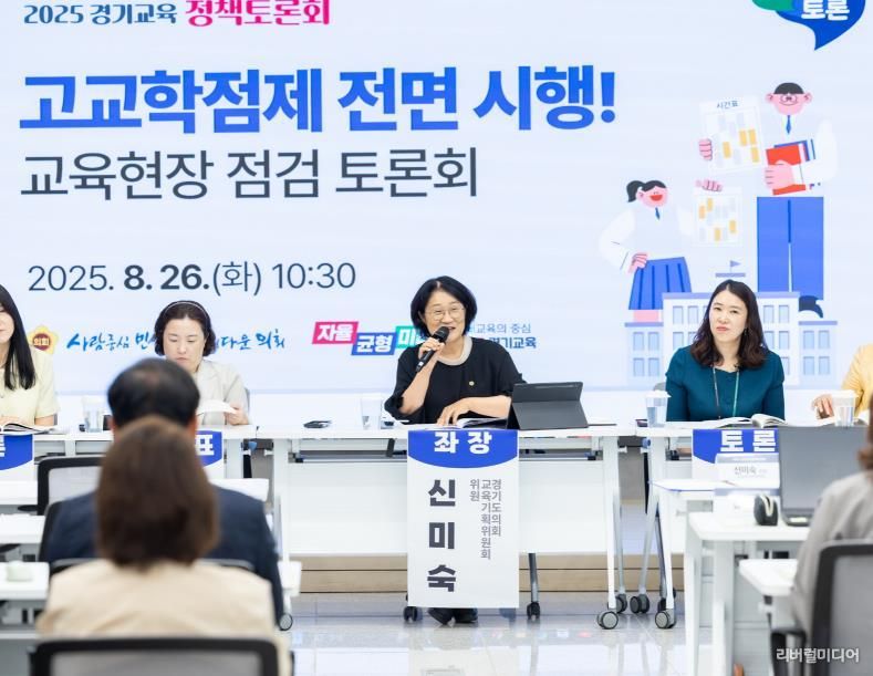[리버럴미디어=공소리 기자] 경기도의회 신미숙 의원(더불어민주당, 화성4)이 좌장을 맡아 26일, 진행한 '고교학점제 전면 시행! 교육현장 점검 토론회'가 성황리에 마무리됐다.