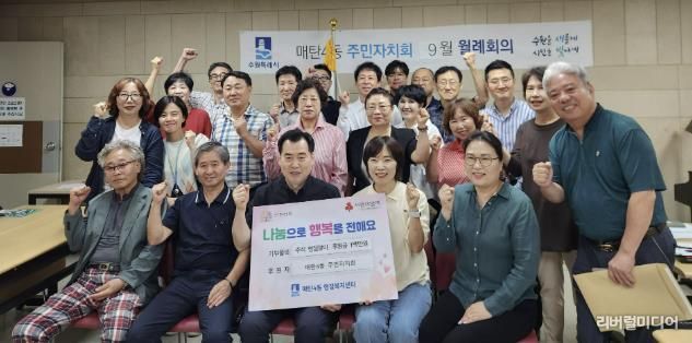 [리버럴미디어=공소리 기자] 수원시 영통구 매탄4동 주민자치회는 추석 명절을 앞두고 소외된 이웃들에게 따뜻한 마음을 전하고자, 지난 9월 8일 회원들의 회비로 마련한 후원금 100만 원을 기부했다.