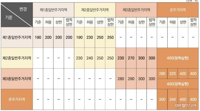 가장 큰 변화는 종 상향 제도 도입과 용적률 체계 개편이다. 당초 기본계획에는 없던 종 상향을 허용해 일반 정비사업에는 1단계 종 상향이 적용되고, 공모 등을 통해 선정된 역세권 정비사업은 최대 준주거지역(용적률 400%)까지 상향될 수 있도록 했다.