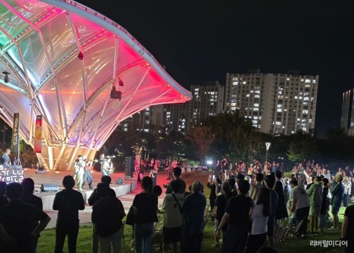 [리버럴미디어=공소리 기자] 김포시 마산도서관과 청춘마이크 무지개추적단이 공동 운영한 '마산도서관 책과 별이 빛나는 밤' 행사가 9월 23일 19시 김포한강신도시 호수공원 야외공연장에서 성황리에 마무리됐다.