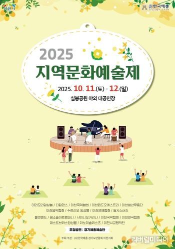 [리버럴미디어=공소리 기자] (사)한국예총 이천지회가 주최·주관하는 지역 예술인들의 축제인 ‘2025년 지역문화예술제’가 오는 10월 11일부터 12일까지 이틀간 오후 2시부터 오후 6시 30분까지 설봉공원 야외대공연장에서 개최된다.