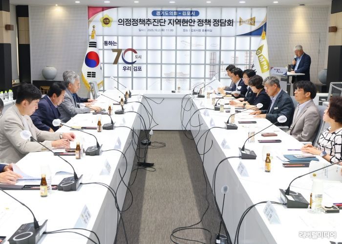 [리버럴미디어=공소리 기자] 경기도의회 의정정책추진단은 2일 김포시청에서 열린 '지역 현안 정책 정담회'를 통해 김포시 주요 정책 현안과 경기도의회 차원의 지원방안을 논의했다.
