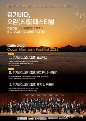 [리버럴미디어=공소리 기자] (재)김포문화재단은 오는 10월 25일부터 26일까지 양일간 김포 아라마리나 문화광장에서 'Ocean Harmony Festival 2025, 경기바다 오감(五感) 페스티벌'을 개최한다고 밝혔다. 이번 행사는 한국경제TV 및 한경arteTV가 주관하고 경기관광공사가 후원한다.