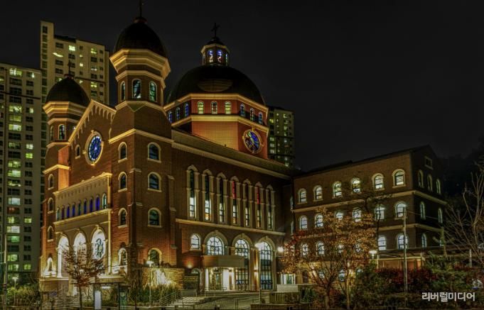 ‘광교1동성당(이의동 1371)’은 외국 관광지에서 만날 법한 모습으로 아파트 숲 사이를 변주하며 신도시의 디자인을 한층 세련되게 만든다. 성당 외관은 서양의 전통적인 건축 요소인 돔과 아치를 현대적으로 간결하게 디자인해 아름다움을 더했다. 특히 돔 형식으로 구현한 성전의 공간감, 천장에 투사되는 스테인드글라스의 빛, 이웃에 개방된 광장 등이 종교 건축물로서의 가치를 높인다.
