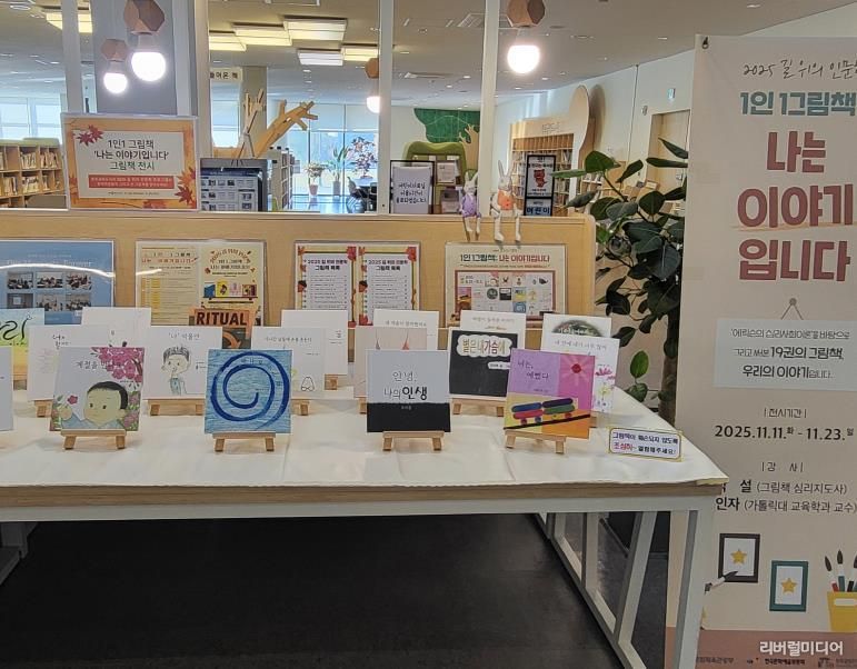 [리버럴미디어=공소리 기자] 수원특례시 망포글빛도서관이 11월 23일까지 1층 로비에서 ‘길 위의 인문학: 1인 1그림책 나는 이야기입니다’ 전시를 연다.
