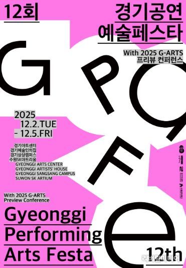 [리버럴미디어=공소리 기자] 경기문화재단은 경기도 수원 일대에서 제12회 경기공연예술페스타를 개최한다. 페스타는 2025년 12월 2일부터 5일까지 경기 예술인의 집, 경기아트센터, 경기상상캠퍼스, 수원SK아트리움 등에서 진행되며, 베스트콜렉션, 쇼케이스 데이, 공동 창·제작 쇼케이스, 피치세션, 토크세션, 워크숍 등 다양한 프로그램을 통해 경기 공연예술 생태계의 흐름과 성과를 한눈에 보여줄 예정이다. 또한 경기아트센터 주최 ‘2025 G-ARTS 프리뷰 컨퍼런스’가 동시 개최되며, 보다 풍성한 전문 교류의 장을 마련한다.