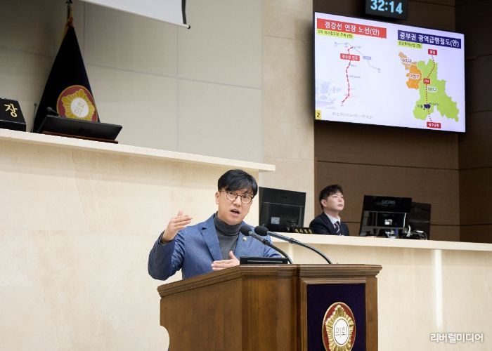 [리버럴미디어=공소리 기자] 용인특례시의회 김병민 의원(구성동,마북동,동백1동,동백2동/더불어민주당)은 26일 열린 제297회 제2차 정례회 제3차 본회의 시정질문을 통해 용인시 철도 정책의 일관성 부재, 마북연구단지-단국대 연계 '신산업 혁신밸리' 조성, 미래 신성장 전략 부재 문제 등을 집중 지적하며 시의 명확한 정책 방향 제시를 촉구했다.