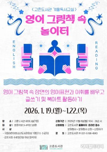 [리버럴미디어=공소리 기자] 김포시 고촌도서관은 오는 2026년 1월 19일부터 1월 22일까지 초등학생 3~4학년을 대상으로 겨울독서교실 '영어 그림책 속 놀이터'를 운영한다.