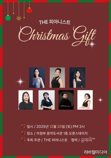 [리버럴미디어=공소리 기자] 의정부음악도서관은 12월 20일 오후 3시, 1층 오픈스테이지에서 ‘The 피아니스트 크리스마스 선물’ 공연을 개최한다.