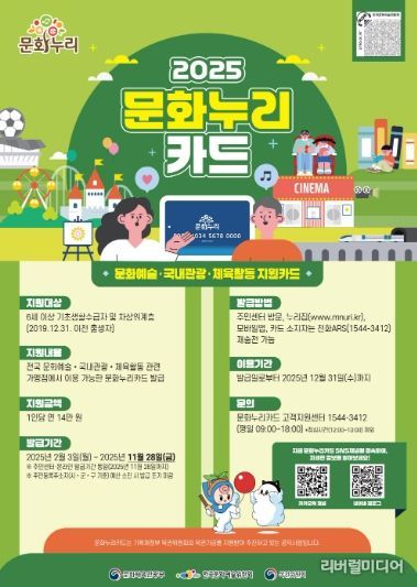 기초생활수급자 및 차상위계층의 문화향유 기회 확대를 위해 발급되는 문화누리카드는 개인당 14만원이 지원되며, 올해 12월 31일까지만 사용할 수 있다.