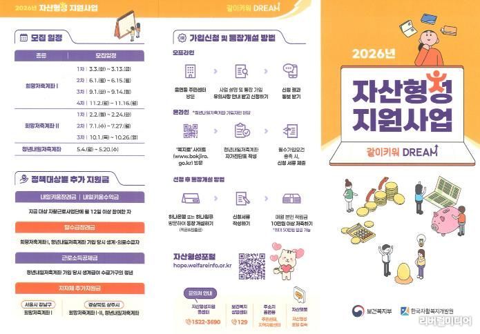 가입을 희망하는 대상자는 주소지 읍면동 행정복지센터에서 신청할 수 있으며, 자산형성 포털 사이트를 통해 가입 일정 등 확인이 가능하다.