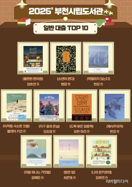 [리버럴미디어=공미소 기자] 부천시립도서관은 ‘부천시민의 책장 속 이야기’를 슬로건으로 2025년 한 해 동안 가장 많이 대출된 도서 30권을 선정해 발표했다.