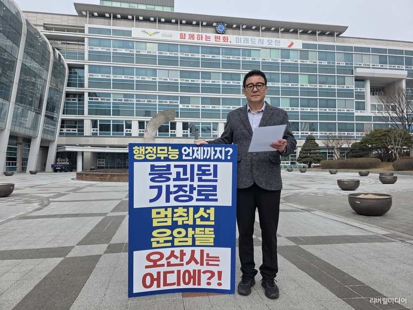 [리버럴미디어=공소리 기자] 조재훈(전 경기도의원)은 지난 1월 12일부터 5주간 이어온 오산시청 앞 1인 시위를 마무리하며, 이권재 오산시장의 무능한 시정 운영을 규탄하고 전면적인 행정 쇄신을 요구하는 성명서를 발표했다.