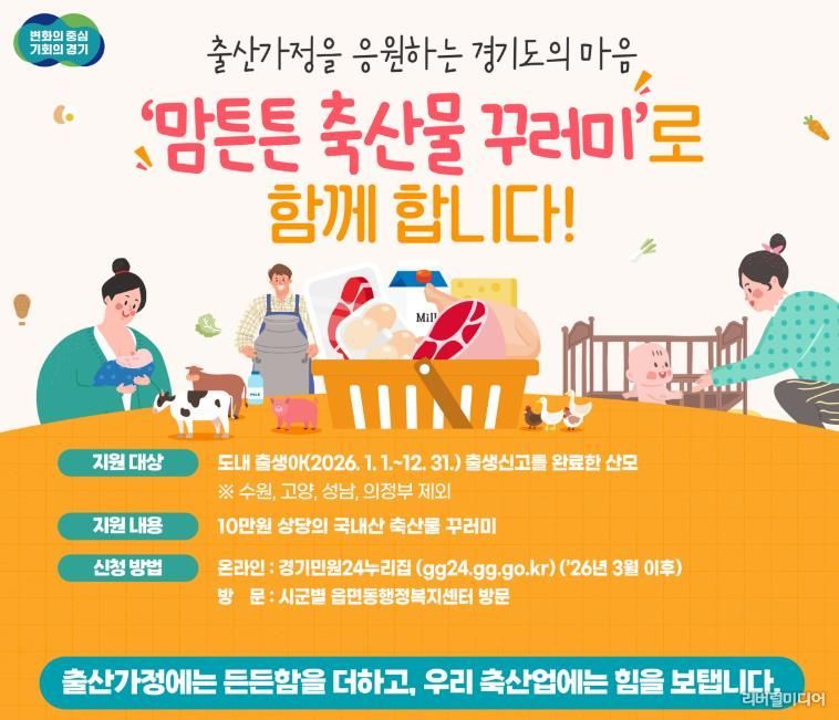 [리버럴미디어=공소리 기자] 경기도는 도내 27개 시군과 함께 ‘2026년도 맘튼튼 축산물꾸러미 지원사업’을 오는 3월부터 추진한다.