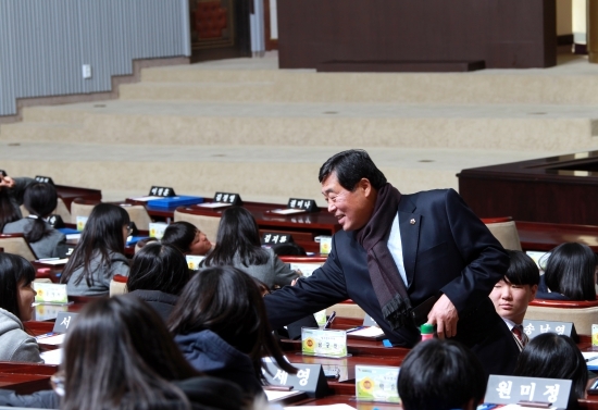 윤화섭 의원은 ‘2017년 제25회 청소년의회교실’에 참석한 안산 신길중학교 학생들과 1일 도의원 체험, 2분 자유발언 등 모의의회 체험을 함께 하며 지방의회의 역할에 대한 이해를 도왔다.