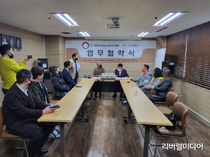[리버럴미디어=공소리 기자] 사단법인 대한민국 코미디언협회 회장 엄용수와 주식회사 웰포유 대표이사 김기수의 상호협약 싸인식이 지난23일 화요일 오전 10시 30분에 여의도에 위치한 충무빌딤 11층 방송연기자 노조회의실에서 있었다.
