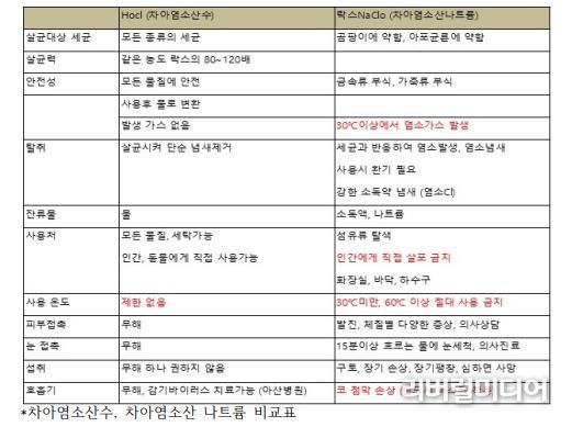 미산성차아염소산수를 흔히 차아염소산나트륨과 같은 물질로 오인하여 사람들이 흡입했을 때 악영향을 준다는 기사들에 대해 김정곤 디지털그린 대표는 미산성차아염소산수를 흔히 차아염소산나트륨과 같은 물질로 오인하여 사람들이 흡입했을 때 악영향을 준다는 기사들이 있는데, 두 물질은 완전히 다른 물질"이라고 말했다.