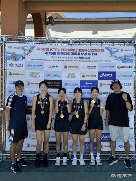 [리버럴미디어=공소리 기자] 광주시청 육상팀이 지난 3일부터 5일까지 예천 스타디움에서 열린 제36회 KTFL 전국실업단대항육상경기대회에서 4×800mR 종목에 출전해 9분 18초 61의 기록으로 대회신기록을 세우며 1위를 차지했다.