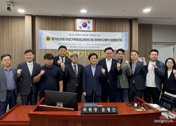 [리버럴미디어=공소리 기자] 경기도의회 여성가족평생교육연구회는 9월 9일 오후에 경기도의회 여성가족평생교육위원회 회의실에서 '경기도 중장년 진로교육 지원방안 연구' 최종보고회를 개최했다.