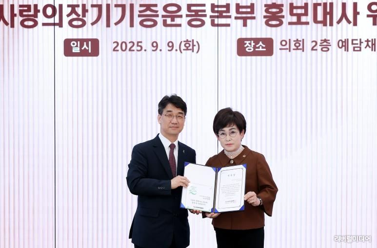 [리버럴미디어=공소리 기자] 경기도의회 교육기획위원회 소속 김선희 도의원(국민의힘, 용인7)이 9월 9일 ‘장기기증의 날’을 맞아 재단법인 사랑의 장기기증운동본부 홍보대사로 위촉됐다.