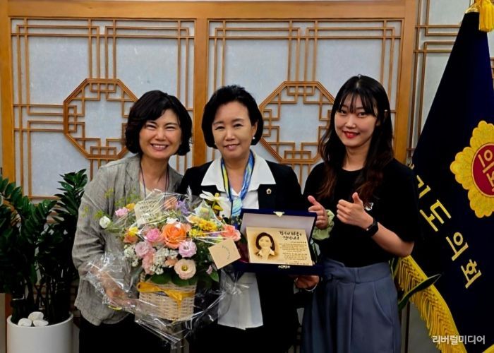[리버럴미디어=공소리 기자] 경기도의회 정윤경 부의장(더불어민주당, 군포1)은 9월 16일 도의회 부의장실에서 열린 경기도 학교사회복지사업 발전 방향 간담회에서 군포·의왕 학교사회복지사들로부터 감사패를 전달받았다.