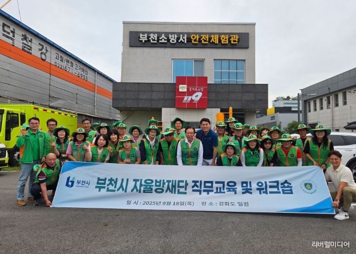 [리버럴미디어=공미소 기자] 부천시는 지난 18일 부천시 자율방재단(단장 김태웅)과 오정119안전센터가 강화도 일원에서 ‘2025년 하반기 직무교육 및 워크숍’을 실시했다고 19일 밝혔다. 이번 교육은 자율방재단 동대표들의 재난 대응 역량과 조직 결속력 강화를 목적으로 진행됐다.