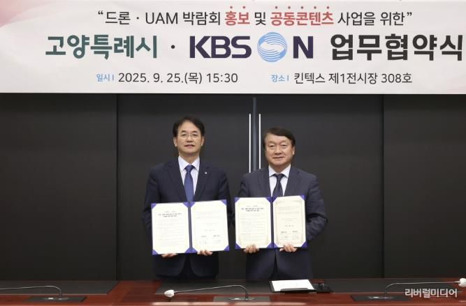 [리버럴미디어=공소리 기자] 고양특례시는 지난 25일 고양 킨텍스에서 KBS N과‘드론·도심항공모빌리티(UAM) 박람회 홍보 및 공동 콘텐츠 사업을 위한 업무협약(MOU)’을 체결했다고 밝혔다.