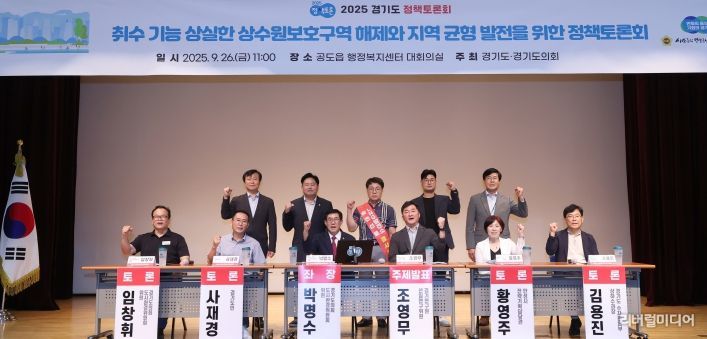 [리버럴미디어=공소리 기자] 경기도의회 도시환경위원회 박명수 의원(국민의힘, 안성2)이 좌장을 맡은 '취수 기능을 상실한 상수원보호구역 해제와 지역 균형 발전을 위한 정책토론회'가 26일 오전 11시, 공도읍 행정복지센터 대회의실에서 열렸다. 이번 토론회는 ‘2025 정책토론 대축제’의 일환으로 박명수 의원이 기획하고 경기도의회와 경기도가 공동으로 주최했다.