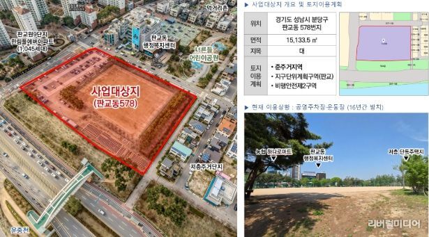 [리버럴미디어=공소리 기자] 성남시는 판교동 578번지 옛 차량등록사업소 부지의 개발 방향을 ‘기업 유치 및 복합문화체육시설 조성’으로 확정하고, 내년부터 사업을 본격 추진한다고 2일 밝혔다. 이는 16년간 방치된 부지를 지역 발전과 시민 편익 증진의 거점으로 탈바꿈시키려는 시의 강력한 의지가 반영된 결과다.