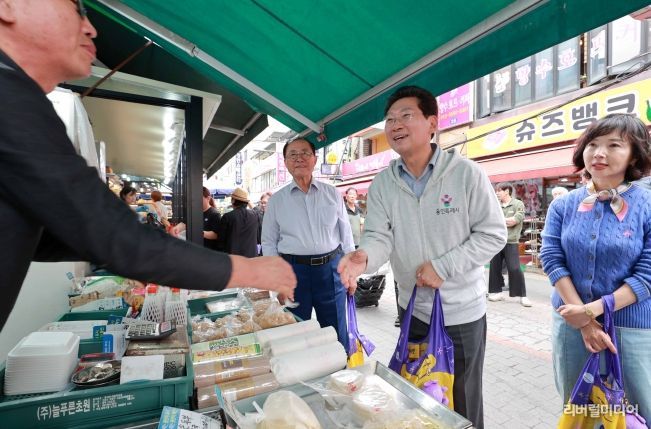 [리버럴미디어=공소리 기자] 이상일 용인특례시장은 2일 모수 추석 명절을 앞두고 지역 전통시장에서 장을 보며 상인과 시민들에게 명절 잘 보내시라는 인사를 하고, 어르신들이 기거하는 사회복지시설을 찾아 인사했다.