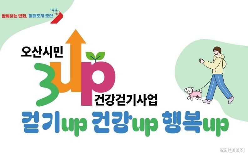 [리버럴미디어=공소리 기자] 오산시는 10월부터 12월 31일까지 시민들의 꾸준한 건강관리를 돕기 위해 ‘3UP 건강걷기 챌린지’를 연말까지 운영한다고 밝혔다.