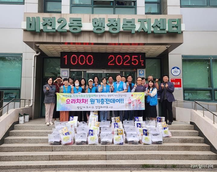 [리버럴미디어=공소리 기자] 평택시 비전2동 지역사회보장협의체는 지난 2일 지역 내의 홀로 사는 어르신 및 저소득 위기가정 15가구에 추석맞이 명절 먹거리를 전달하는 ‘으라차차 원기충전데이’를 추진했다.