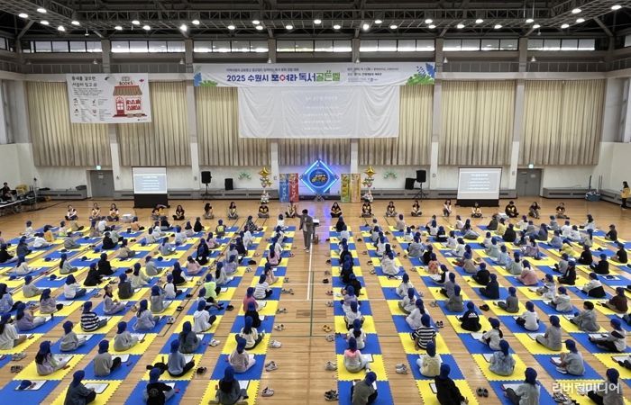 [리버럴미디어=공소리 기자] 초등학생 500명이 참여한 ‘2025 수원 독서골든벨’ 대회가 11일 경기도인재개발원 체육관에서 열렸다.