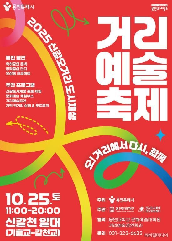 [리버럴미디어=공소리 기자] 용인특례시는 25일 신갈오거리에 있는 신갈천 일대에서 ‘2025 신갈오거리 도시재생 거리예술축제’를 개최한다고 14일 밝혔다.