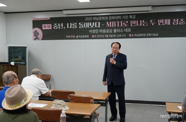 [리버럴미디어=공소리 기자] 하남문화원은 지난 10월 2일 '사랑의 본질' 강의를 끝으로, 한 달간 진행된 ‘2025 하남문화원 문화대학 시민 특강’을 성황리에 마무리했다.