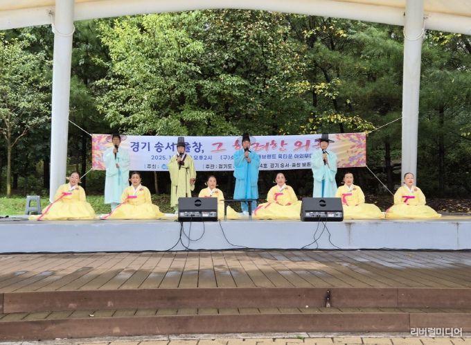 [리버럴미디어=공소리 기자] 동두천시는 10월 11일 오후 2시 소요산 축산물브랜드육타운 야외무대에서 경기도 무형유산 제54호 ‘경기송서(송서·율창)’ 보존회(보유자 이석기, 회장 김춘경)의 2025년 두 번째 공연 '경기송서·율창 ‘그 화려한 외출’(2차)'을 성황리에 개최했다고 밝혔다.