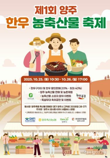 [리버럴미디어=공소리 기자] 양주시가 양주축산농협과 공동으로 주최하고, 경기도농수산진흥원 공모사업 지원으로 추진되는 '제1회 양주 한우 농축산물 축제'를 오는 10월 25일부터 26일까지 이틀간 개최한다.